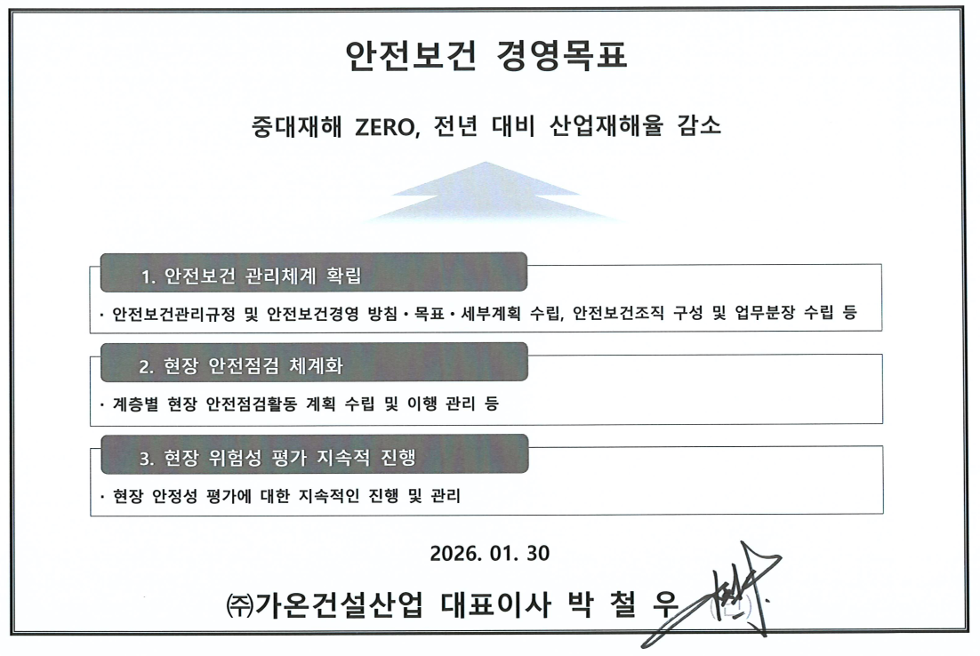 [가온건설산업] 2026년 안전보건경영목표